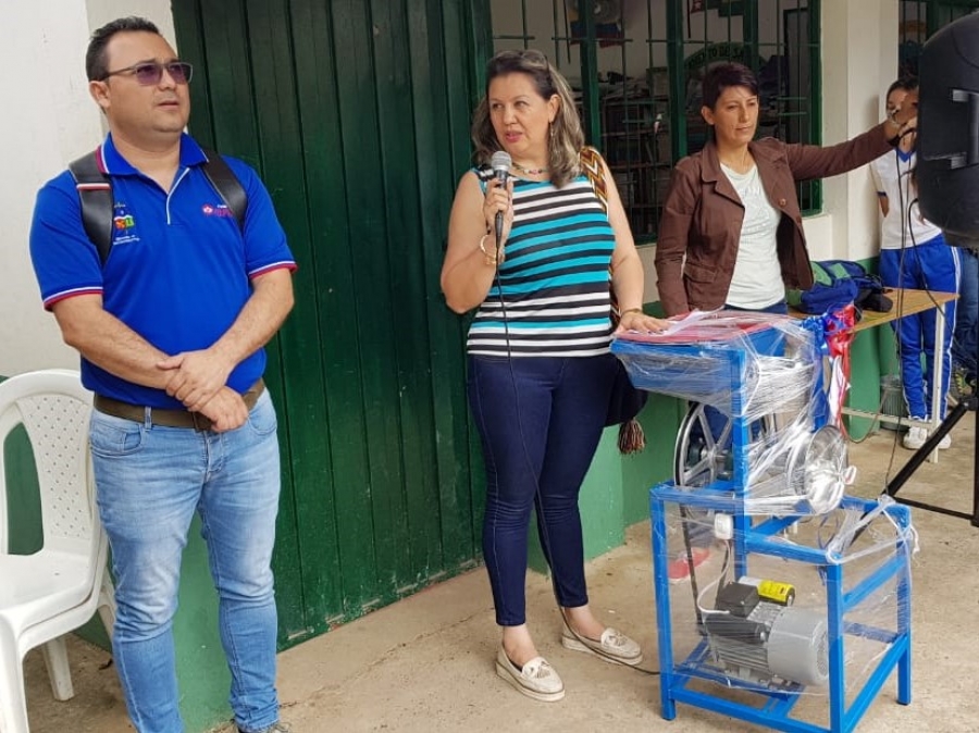 Como componente del proyecto se incluyó el apoyo y/o dotación de insumos para que la Institución Educativa siguiera incentivando los emprendimientos en su metodología educativa, por ello en cada Feria se hizo entrega de un Molino de Granos con un Motor de 1HP en cada Institución, de acuerdo a la necesidad presentada por los Rectores, Docentes y Estudiantes de ambos colegios.